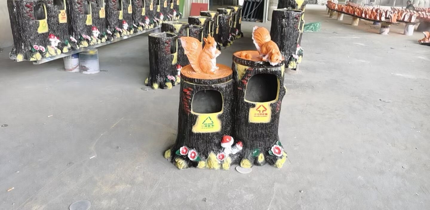 玻璃钢仿树桩垃圾桶 野外景区玻璃钢卡通垃圾箱 公仔垃圾桶 可开模定制 免费规划